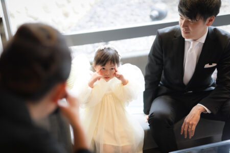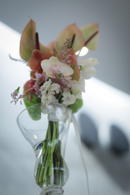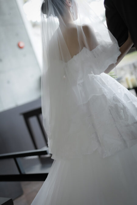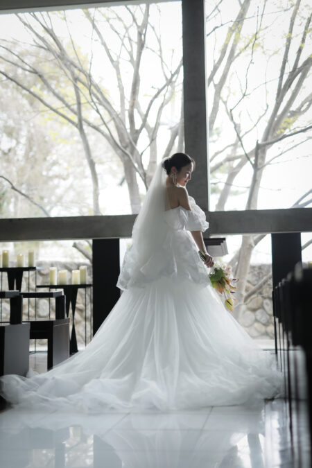 誓約証やヘアアクセサリーなどに取り入れ、モードの中にも可愛らしさが感じられる上品なスタイルに。