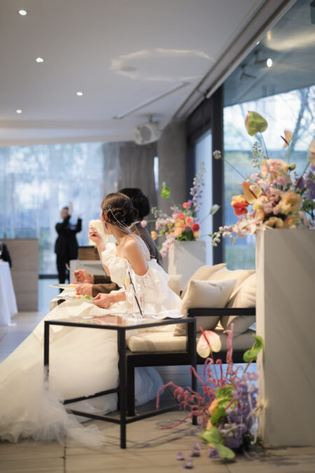 お花やヘアメイクにもこだわりながら、何よりゲストとの時間を大切にされたおふたり。