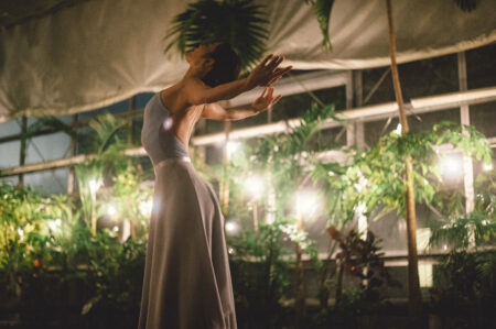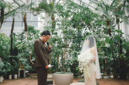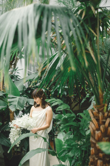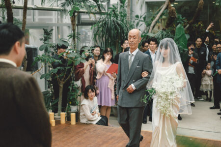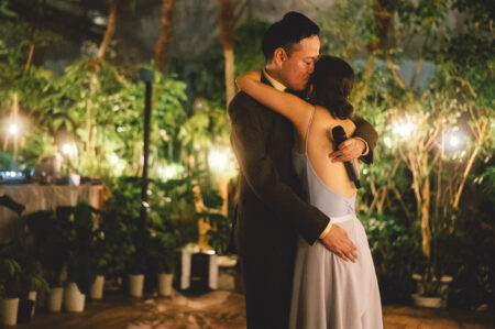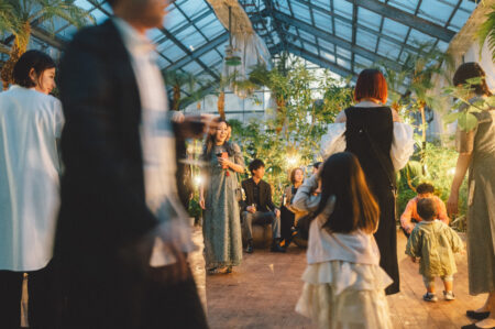 新婦が舞うクラシックバレエの一瞬を、最大限に美しく表現するため高砂をあえてなくし、夜の植物温室にキャンドルを灯し、誰もが息を呑む瞬間を想像してすべてが形になった一日。