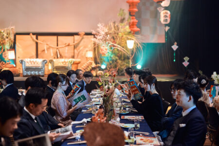 ゲスト一人ひとりには「○○の神」というあだ名の席札を用意。