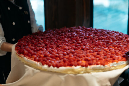 ウェディングケーキは、ゲストみんなで輪になって食べられるように大きな丸い形に。