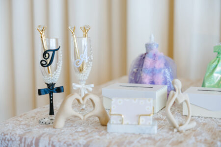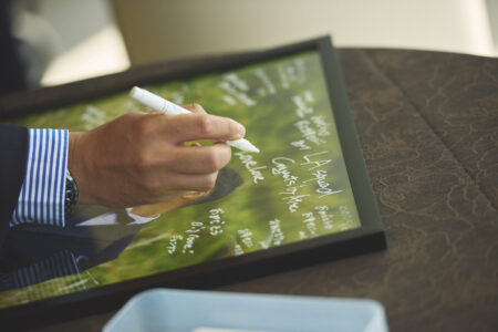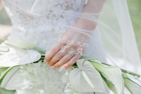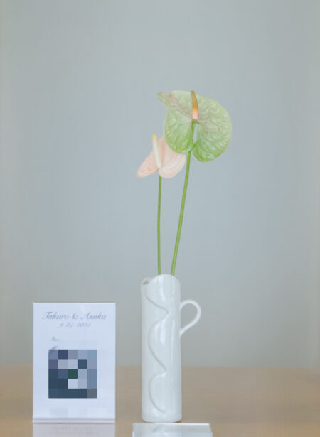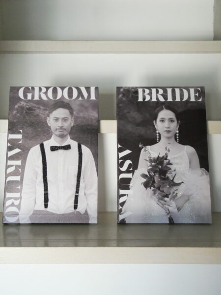 新郎家の父にはリングピローとなる花瓶を、新婦家の父には真鍮の結婚証明書を手作りしてもらい、証明書にはゲスト一人ひとりのイニシャルを刻印。