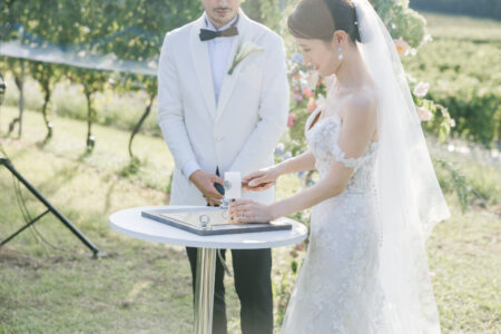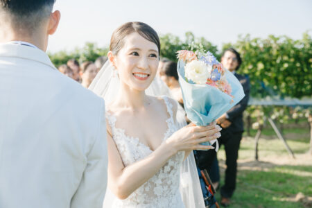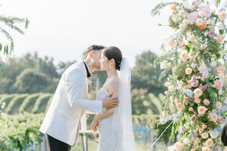 そんな想いから、自然豊かなワイナリーで、挙式からパーティまですべてをガーデンで行う結婚式を選んだふたり。