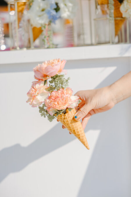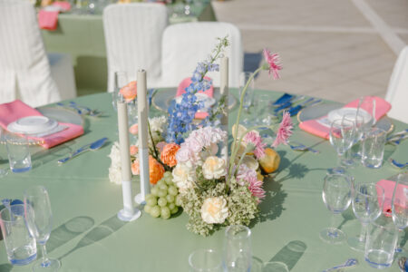 空間装飾のテーマカラーはピンク×グリーン。