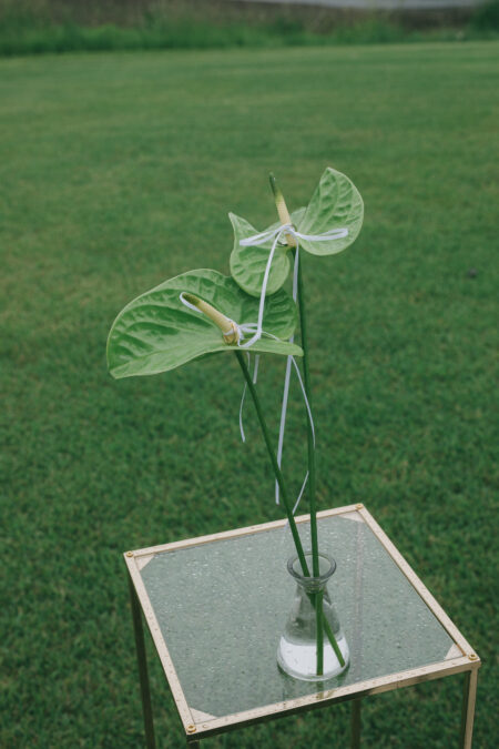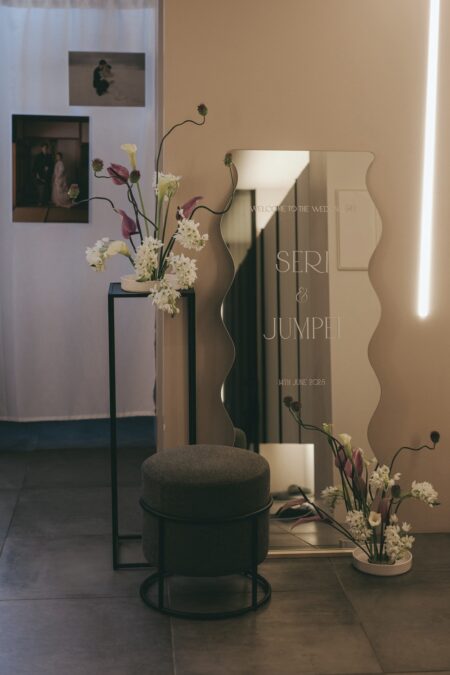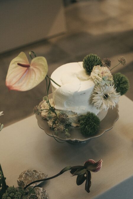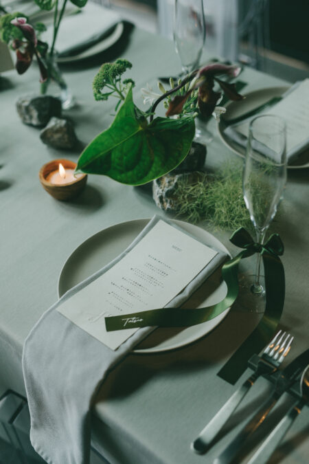 装花や空間装飾は、会場そのものと自然を引き立てることを大切にしました。