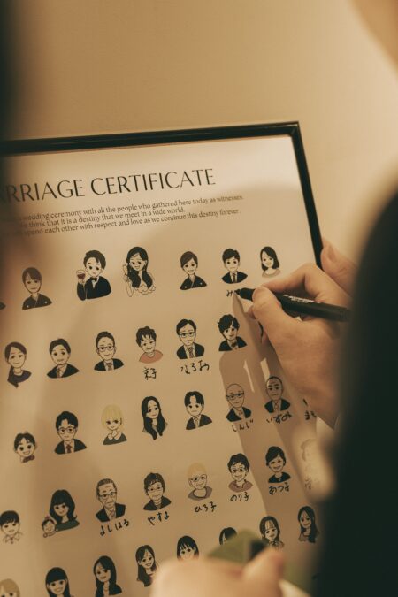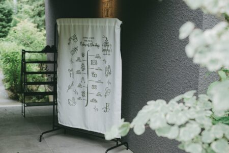 招待状やプロフィールブック、結婚証明書など多くのアイテムをDIYし、自分たちらしい世界観を形にしました。