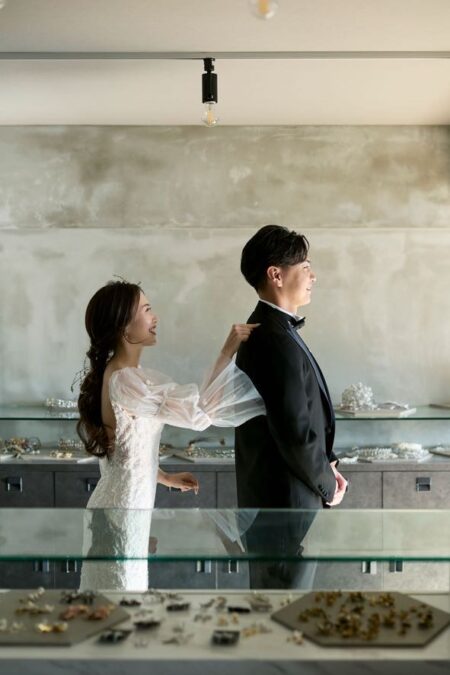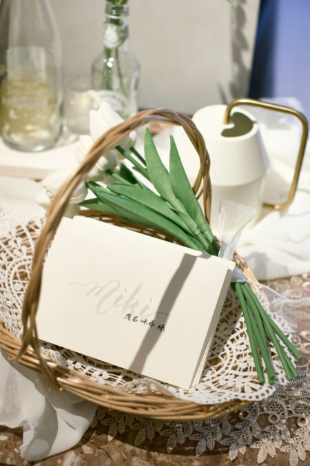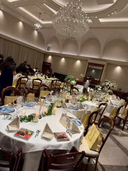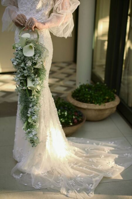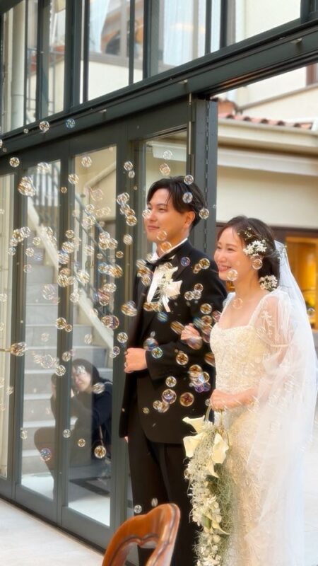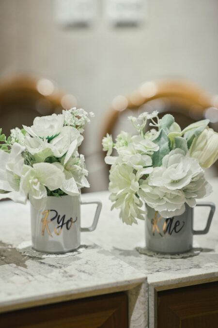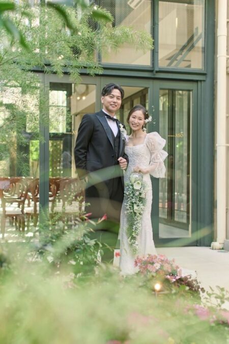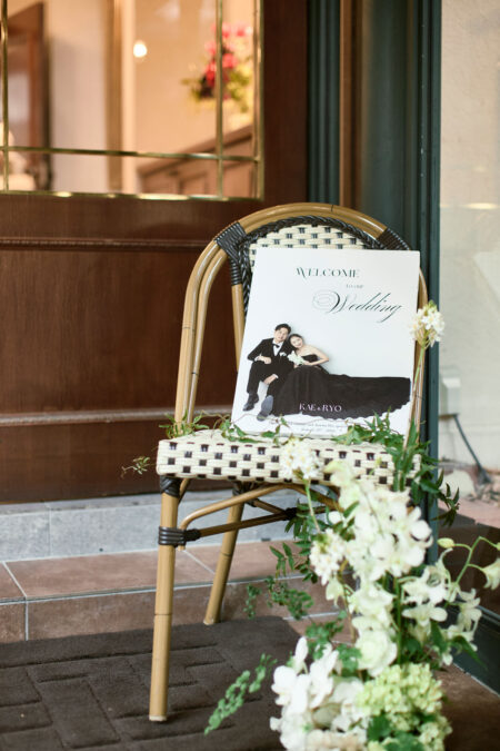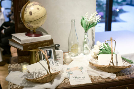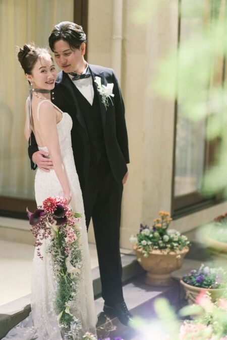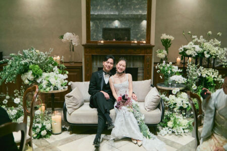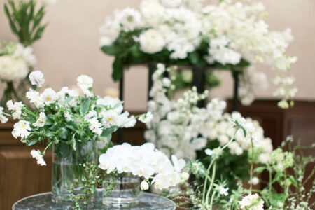 生花を使ったアレンジが華やかさを添えたコーディネートにもこだわりました。