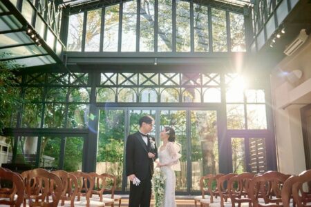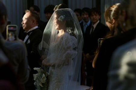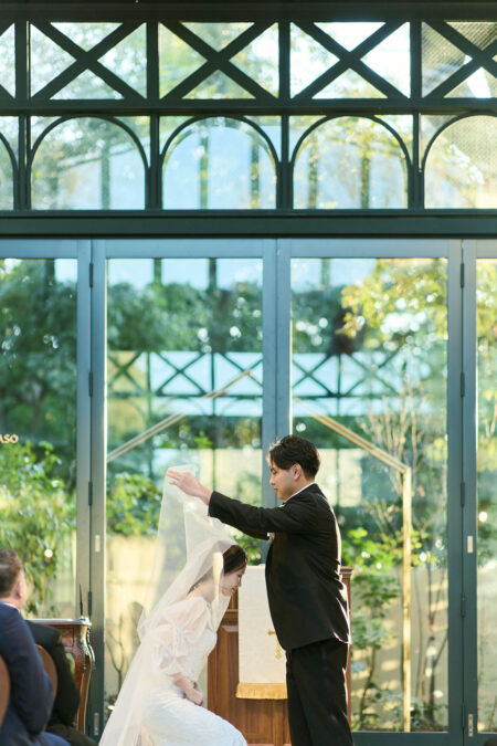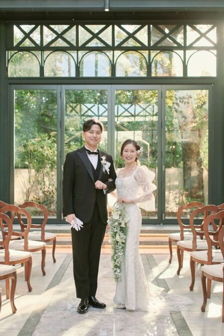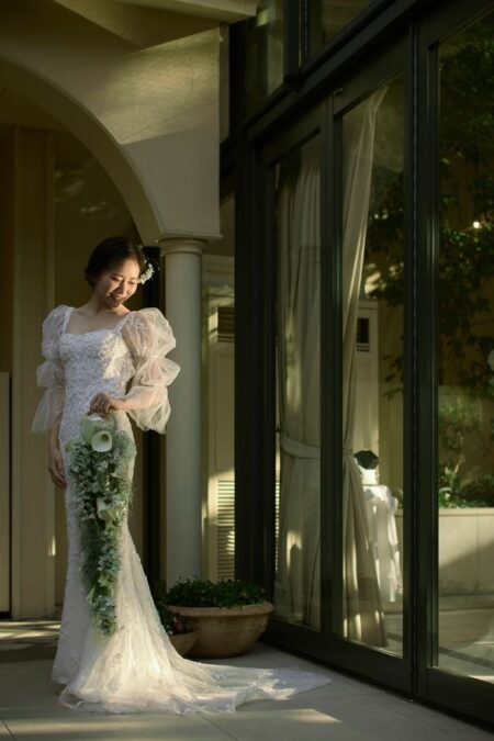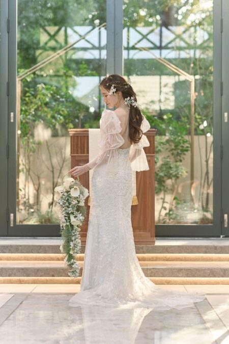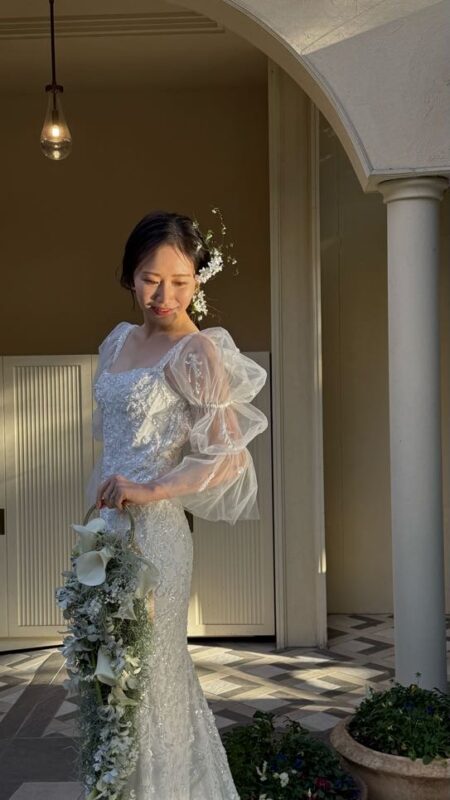 太陽光が差し込むチャペルが大好きで、その空間に自然と溶け込むドレスを選んだ新婦。