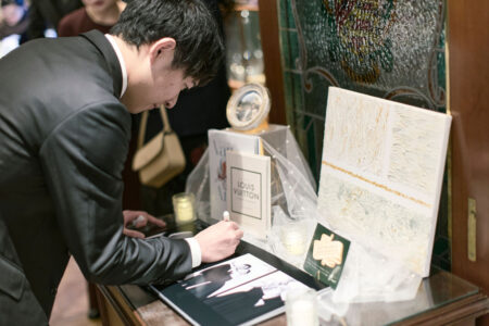 ゲストの席に入り、一緒に料理とお酒を楽しむスタイルに。