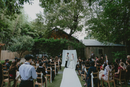 まるで海外ウェディングのようなバーン会場に、“ダンスフロアを中心に構成したパーティー”