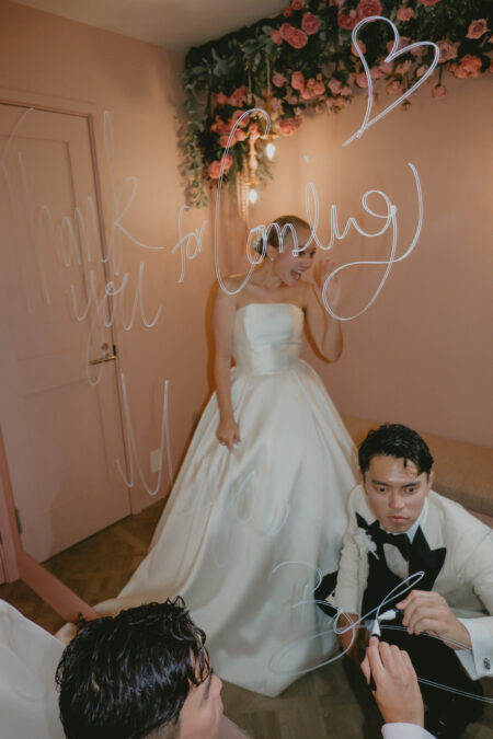 海外さながらのポテンシャルを持つ会場に、ふたりらしい装飾とコンテンツを重ねることで、