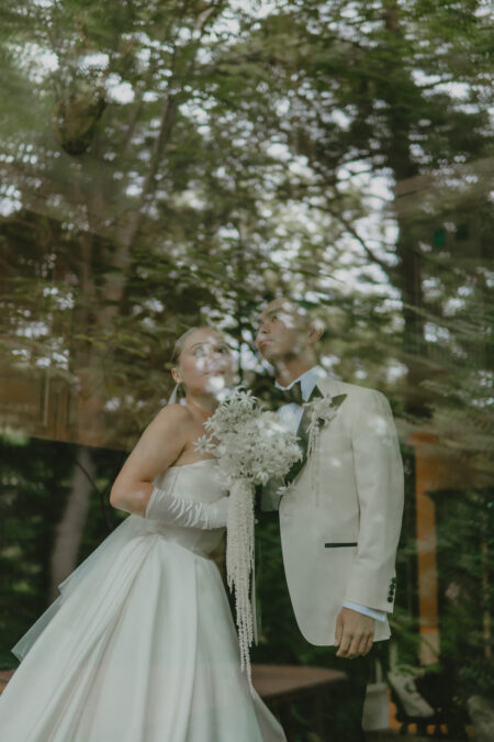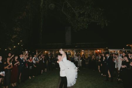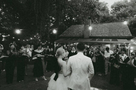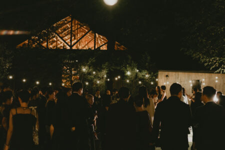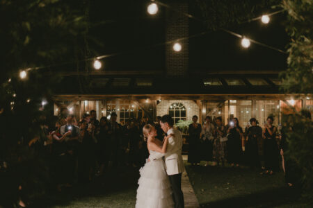 100mを超えるストリングライトを使って、イルミネーションキャンドルの光に包まれた空間で、ふたりはロマンティックなファーストダンスを披露。