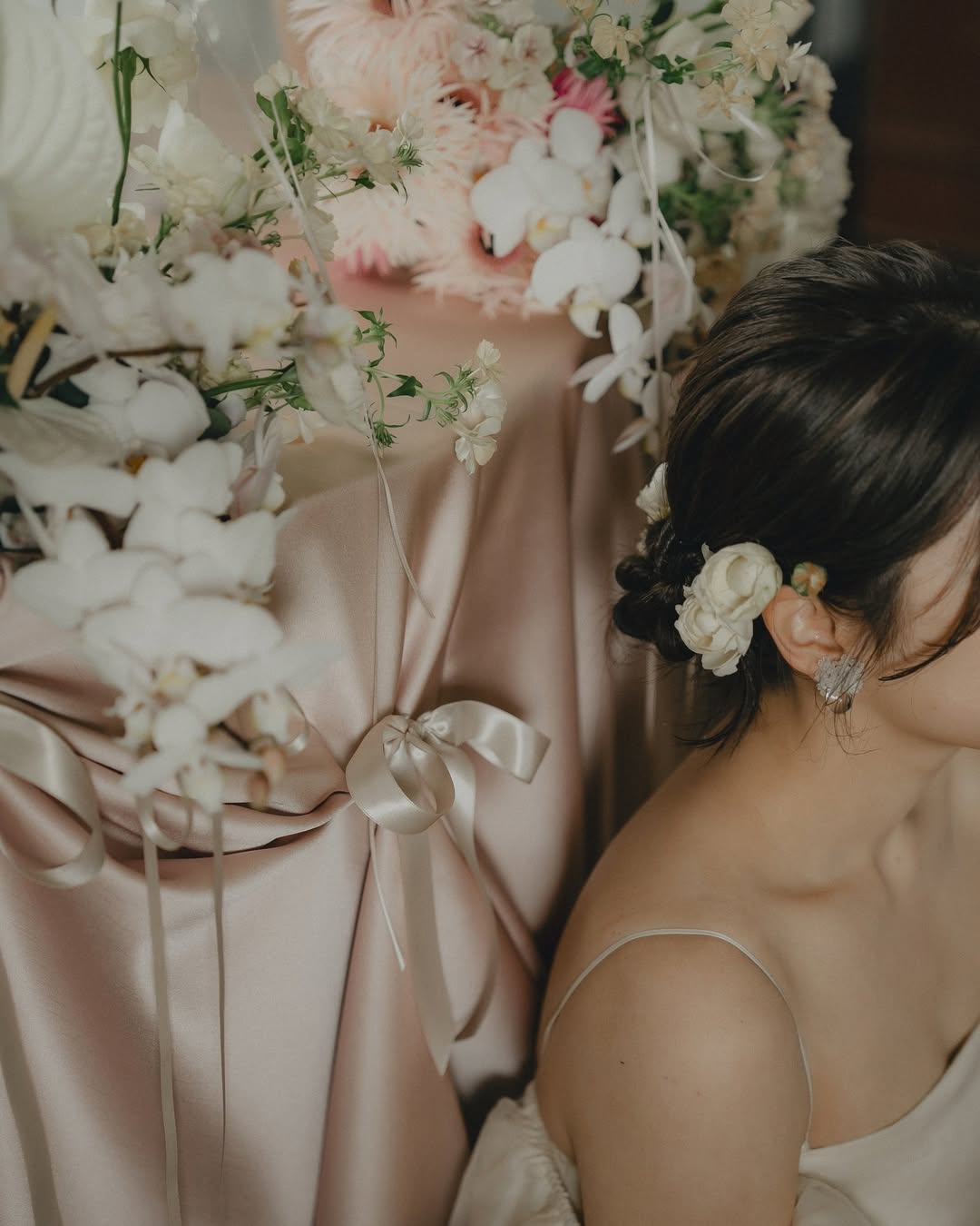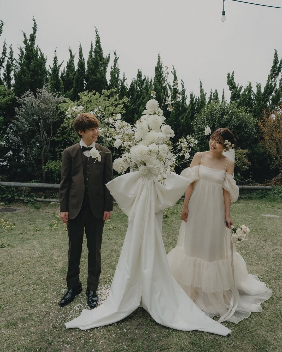 黒リボンが柔らかなシフォンを引き締める上質コーデ (出典元 Instagram:@kogatei_wedding florist: @kenshi.maeda)
