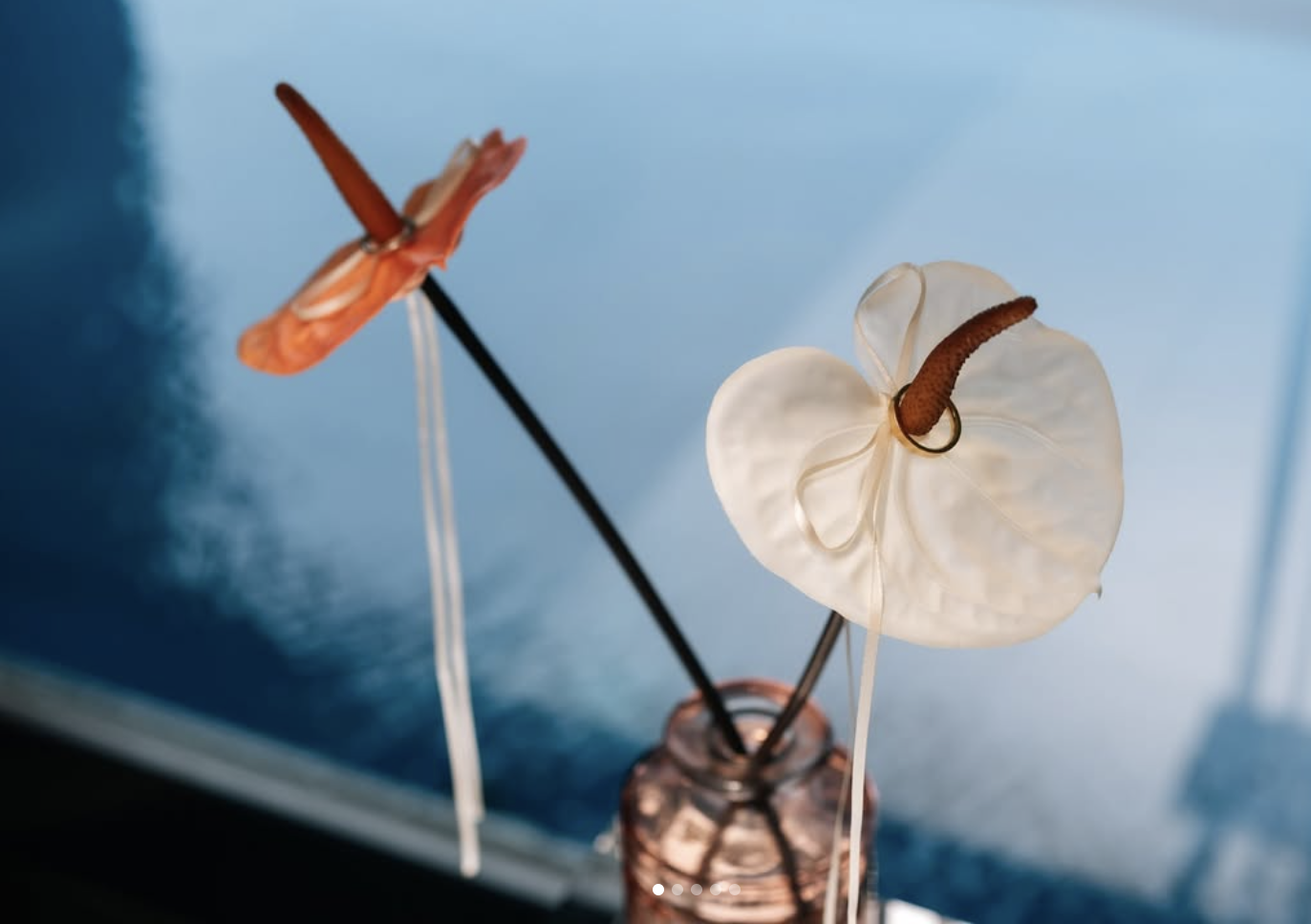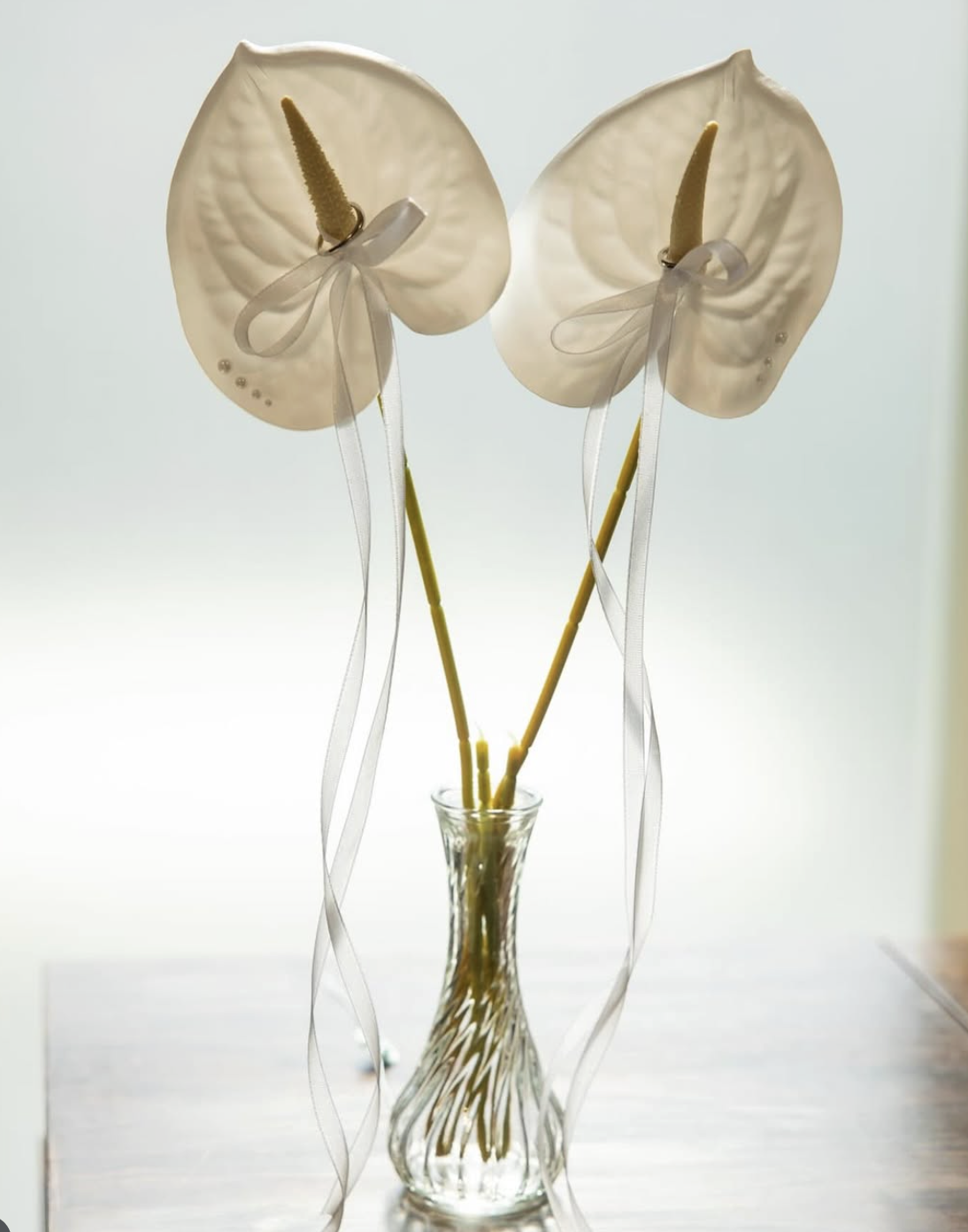 アンスリウムのリングピローを取り入れるときは、フラワーベースにもこだわって