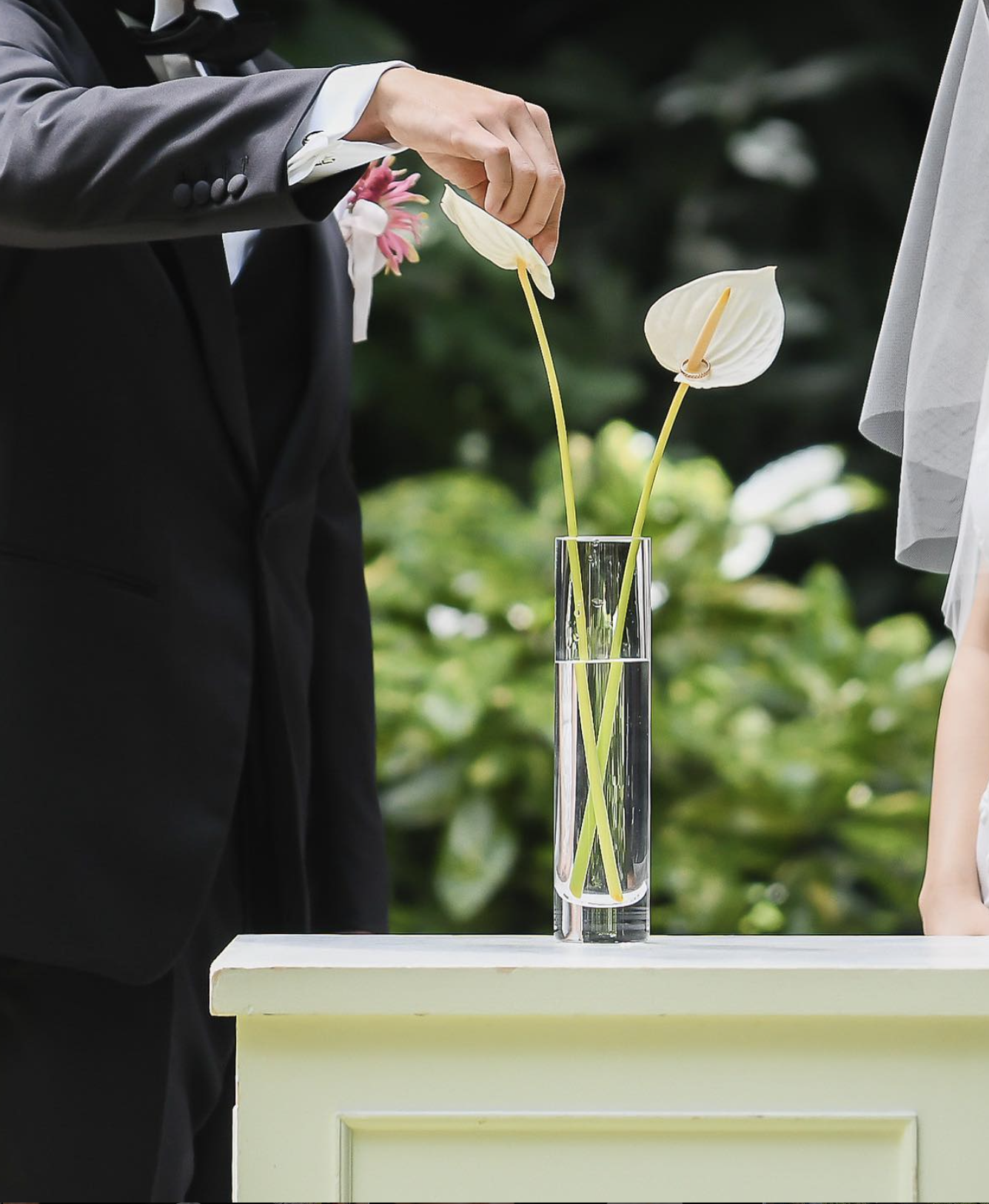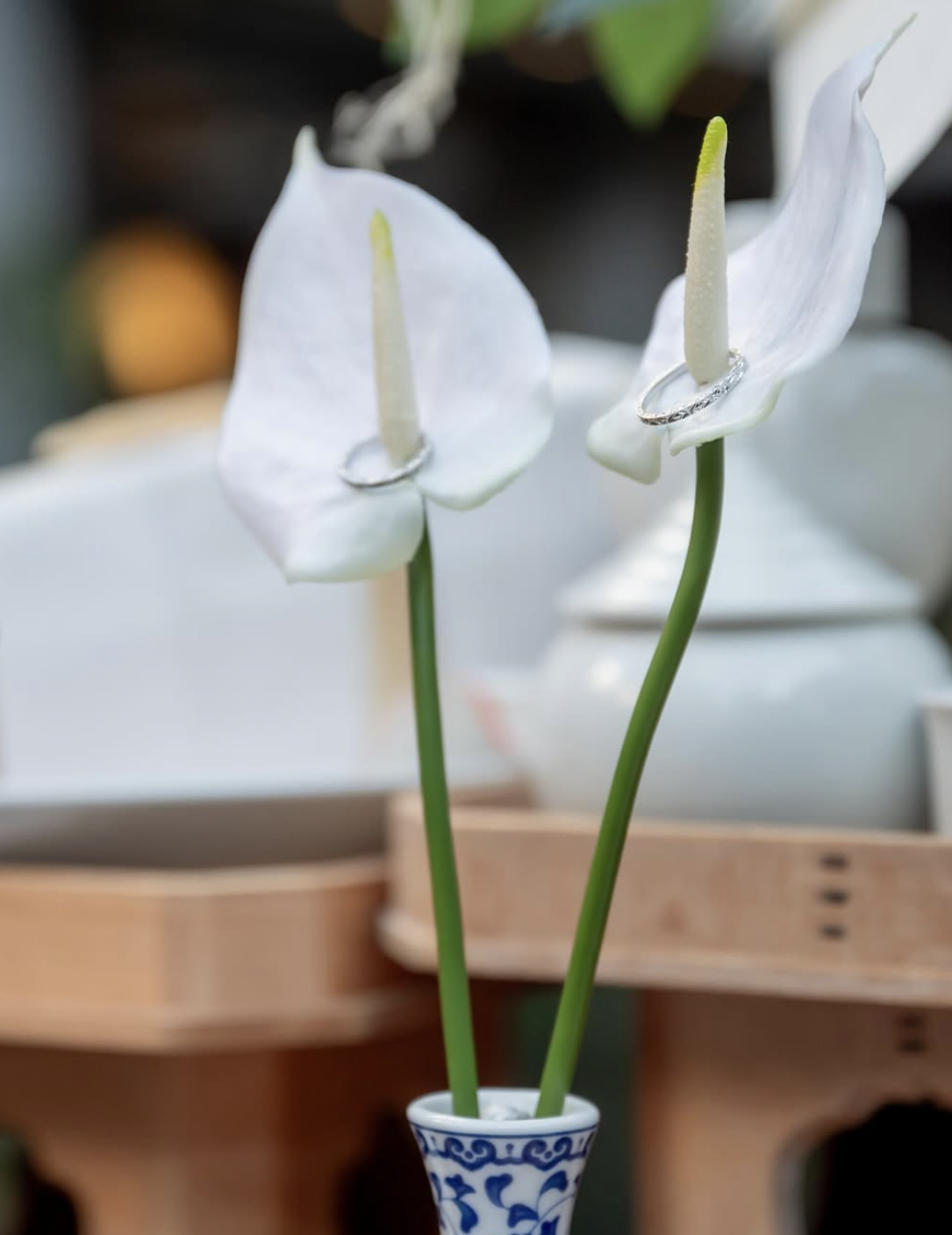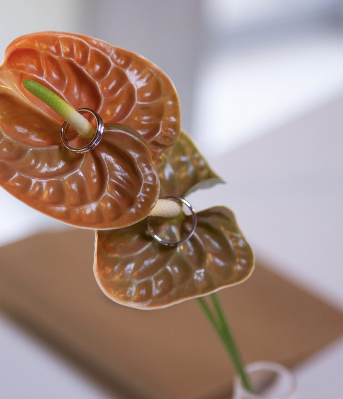 バイカラーのアンスリウムなら、指輪を取り間違える心配がないのも嬉しいポイント!