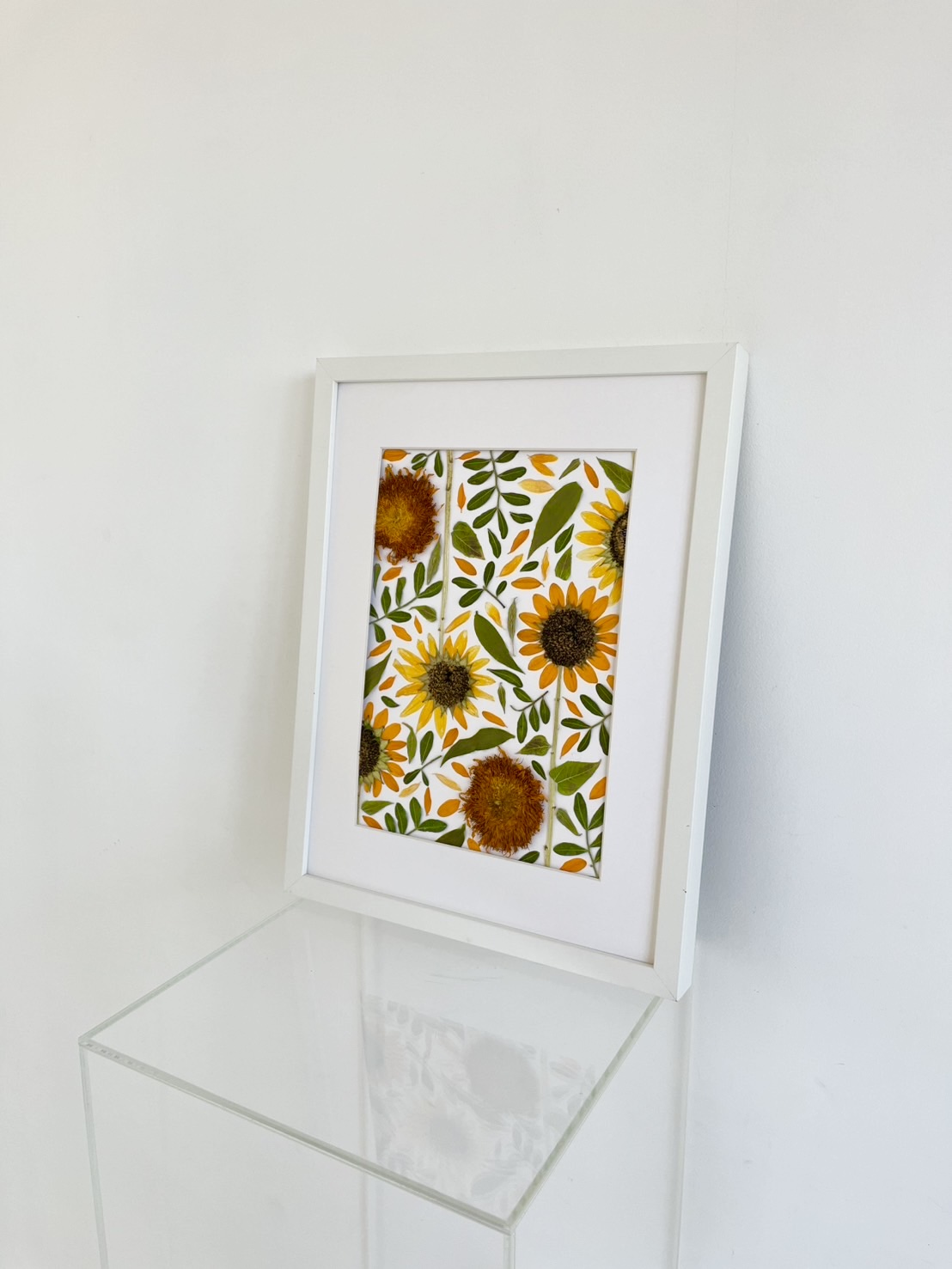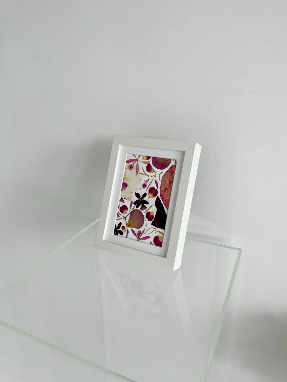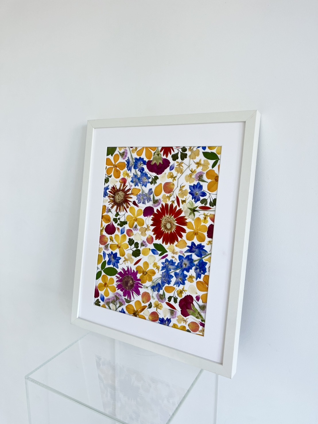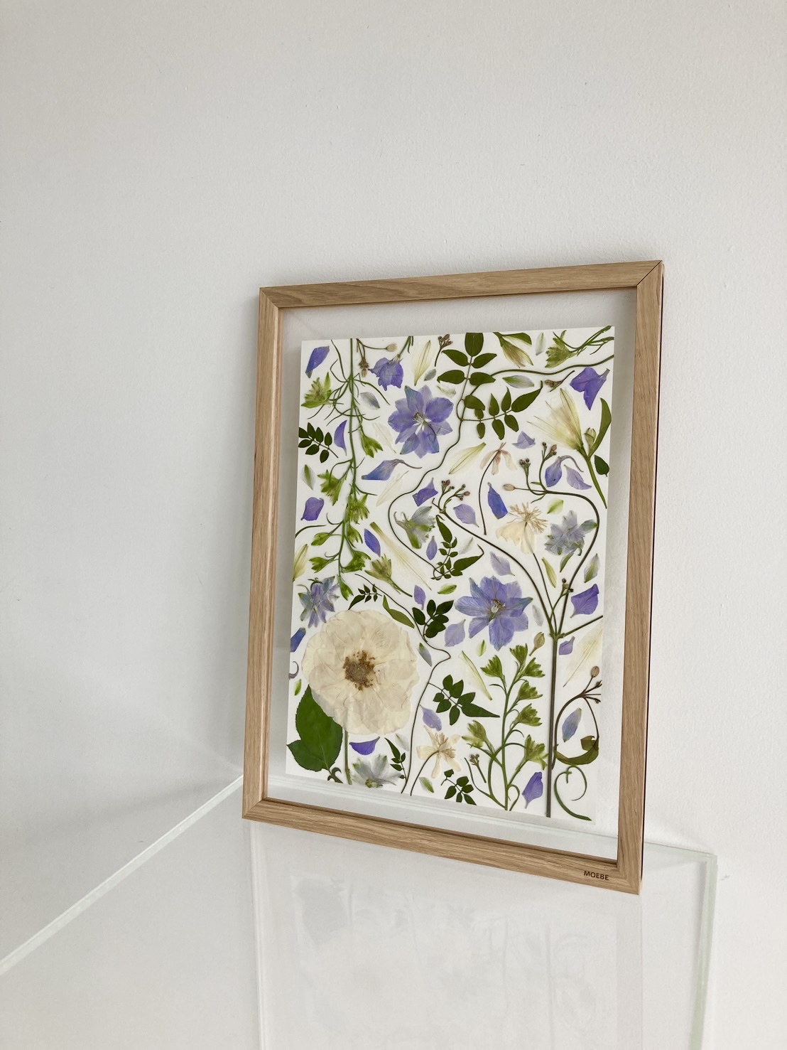 メインのお花を丁寧にプレスして、台紙いっぱいに小さなお花と動きのある葉をレイアウト。
