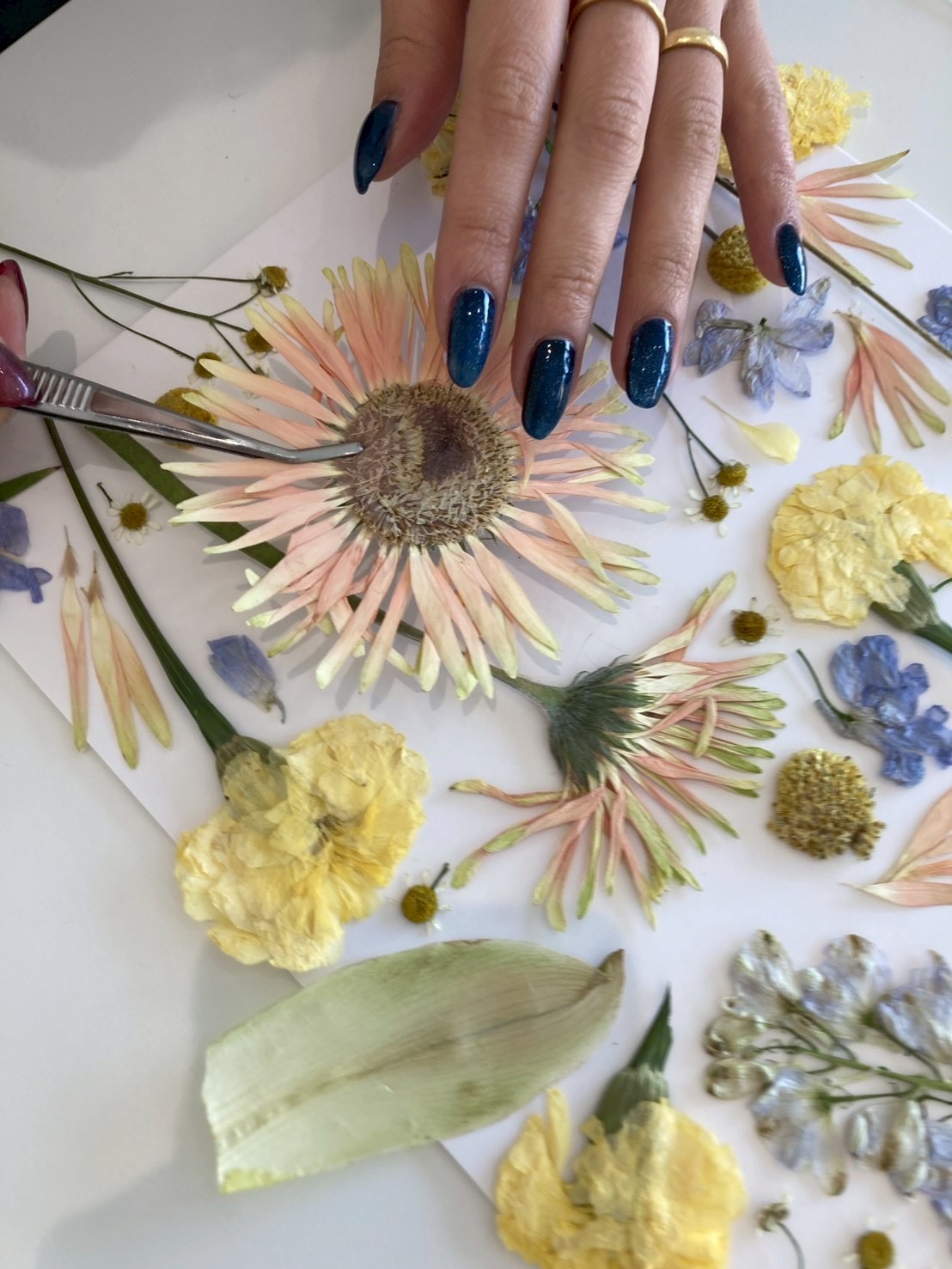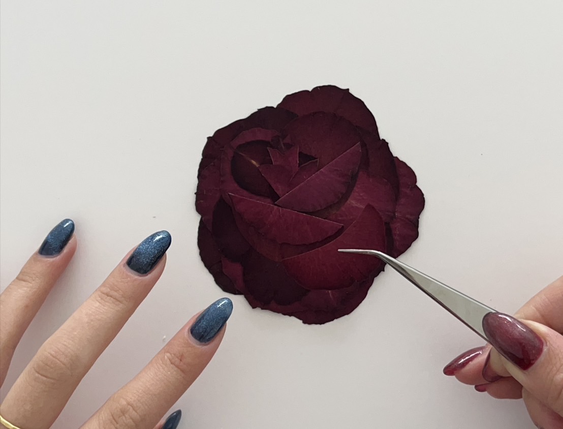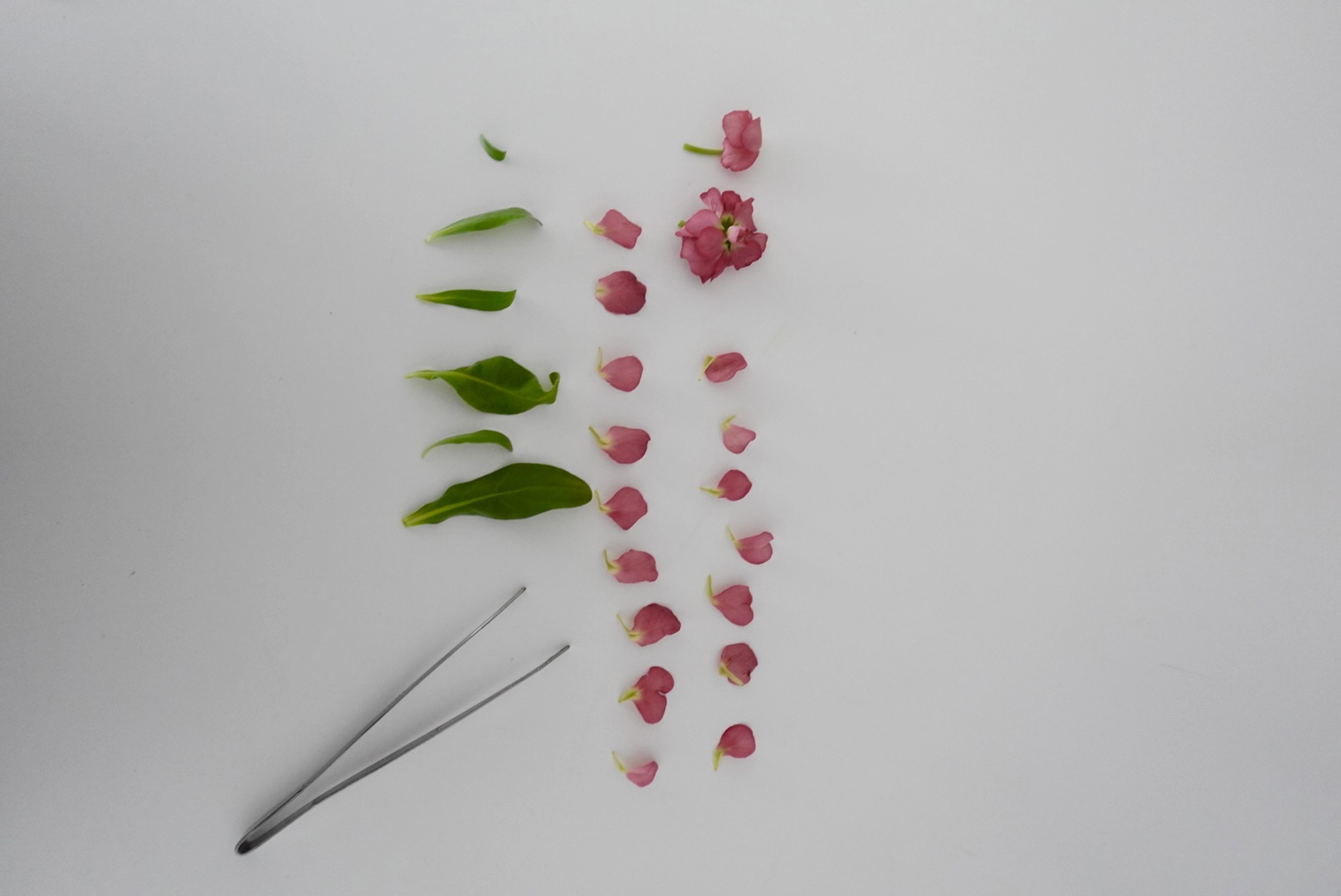 素早く乾燥させて、それぞれのお花に適した方法で一枚一枚解体し、丁寧にプレスする。