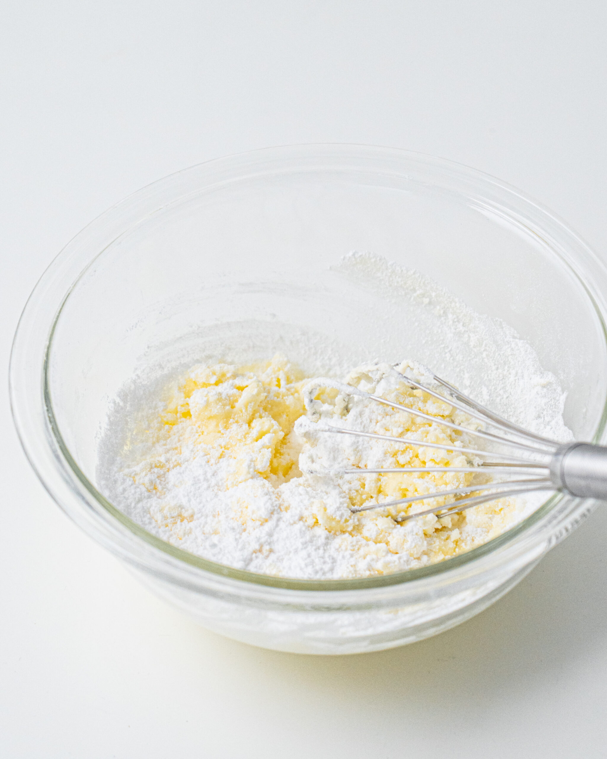 室温バターをクリーム状にし、粉砂糖を加えてなめらかになるまでよく混ぜる。