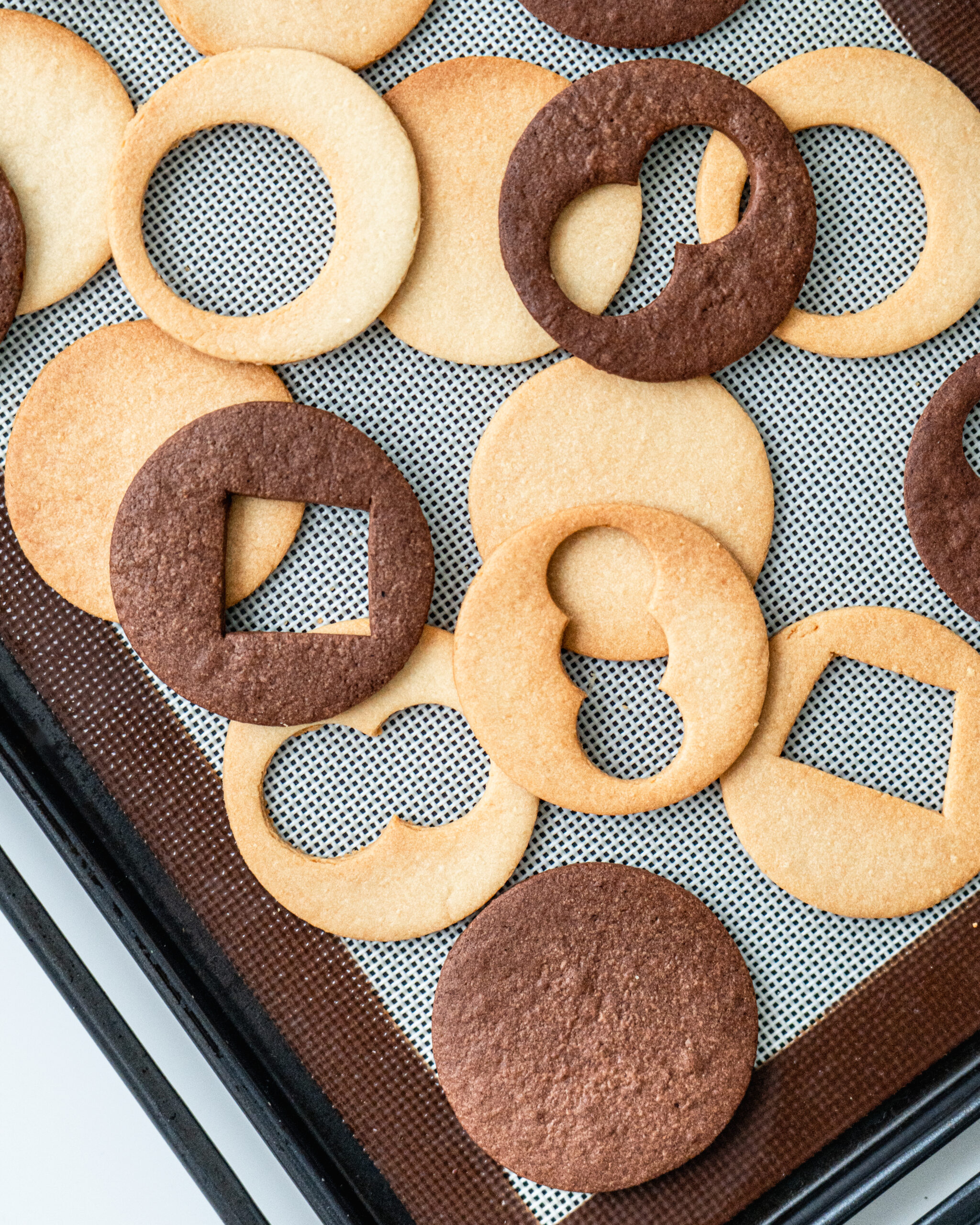 上に重ねる方はお好みの型や口金の裏側で真ん中をくり抜く。