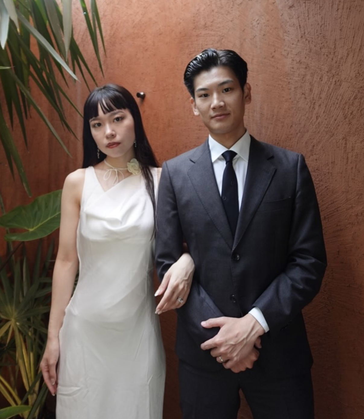 そんなモードなお二人の入籍フォトは、あえてアクセサリーやブーケで装飾せずシンプルに。