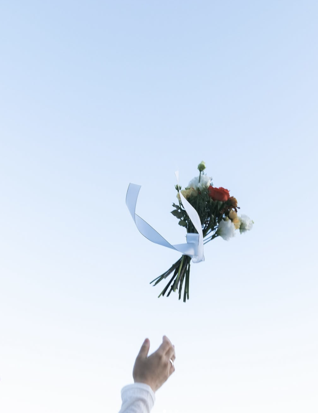 青空をバックにしたブーケやリングの“手元ショット”は、マストで撮影しておきたい。