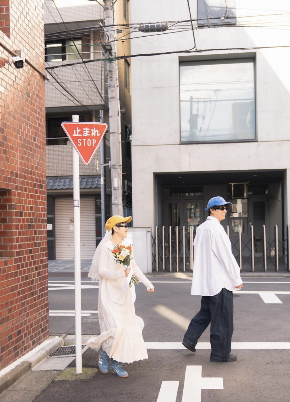 都会の街並みで撮影する入籍フォトは、ゆるコーデでエフォートレスに。