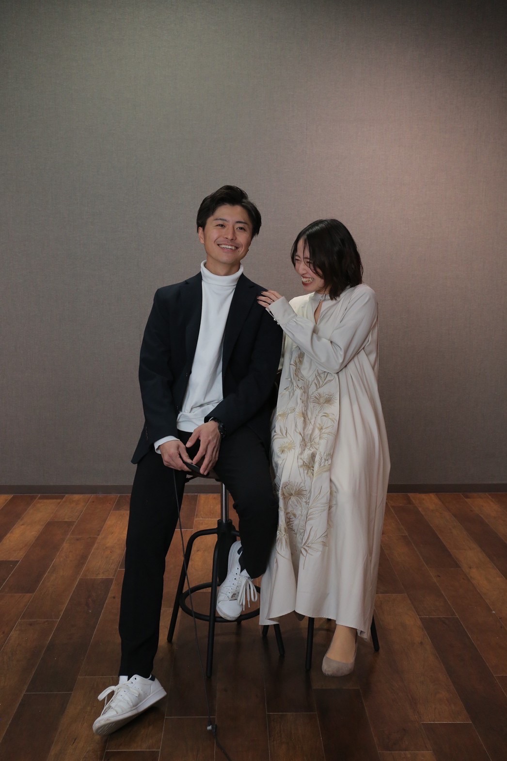 ドレスやタキシードではなく、リアルクローズを意識したスタイリングで自然体な二人を表現。